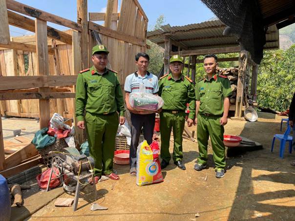 Bên cạnh việc góp ngày công lao động khắc phục sự cố, Công an xã Pa Tần cũng tổ chức thăm hỏi, động viên và trao tặng nhiều phần quà thiết thực gồm gạo, lương thực và nhu yếu phẩm cho các hộ gia đình chịu ảnh hưởng nặng nề bởi thiên tai, giúp bà con vơi bớt khó khăn trước mắt.