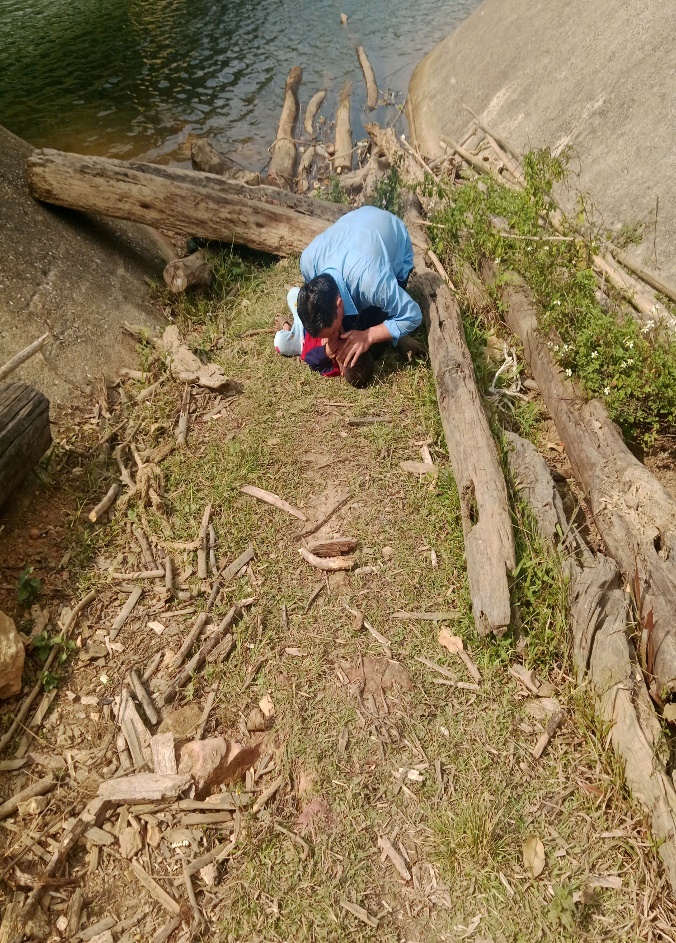 Anh Lò Văn Quyết tiến hành sơ cứu ban đầu cho cháu Lò Khánh Hiệp