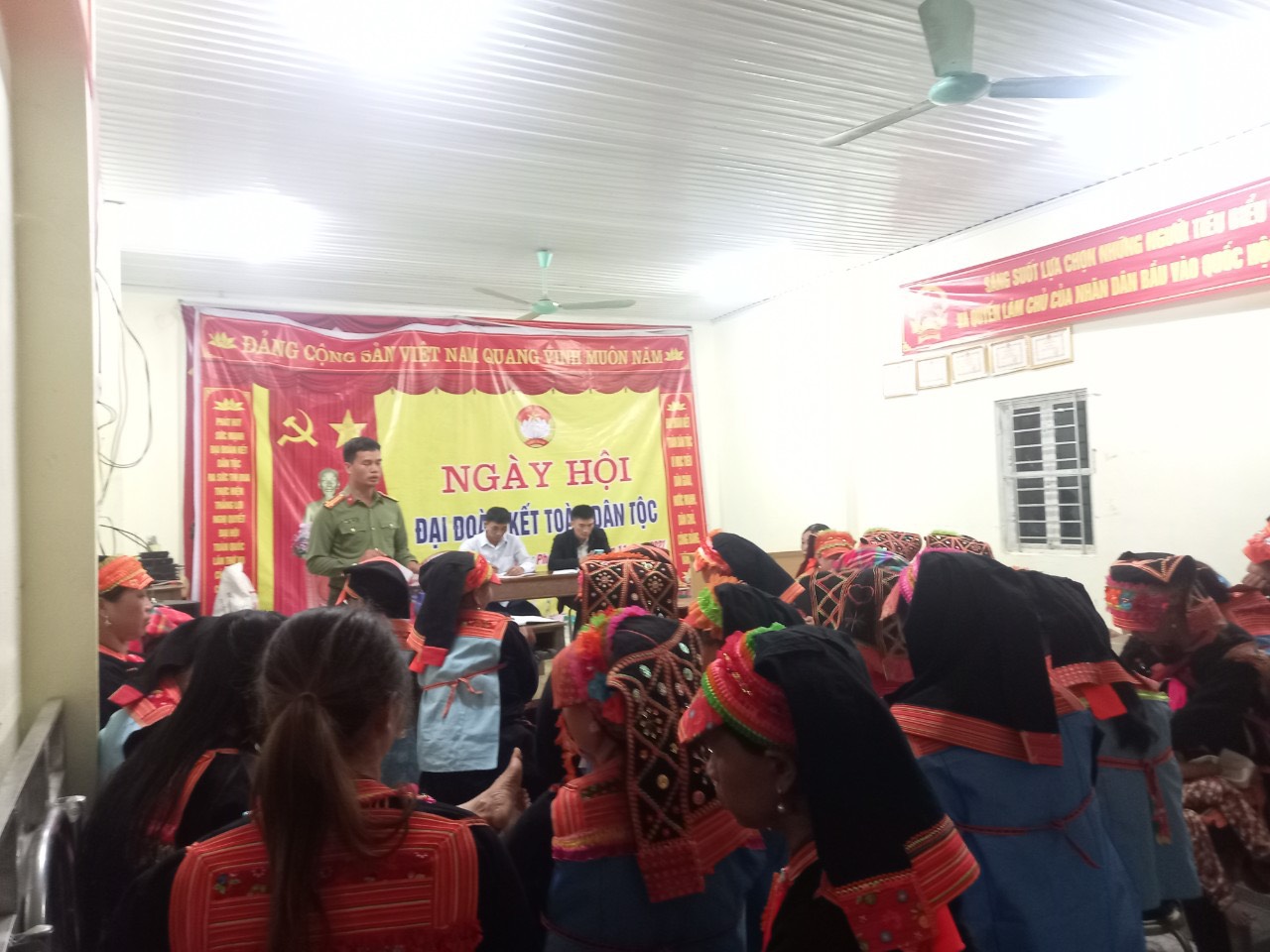 Cán bộ chiến sĩ Công an tuyên truyền pháp luật về xuất nhập cảnh cho đồng bào dân tộc thiểu số tại bản Sòn Thầu 1]**