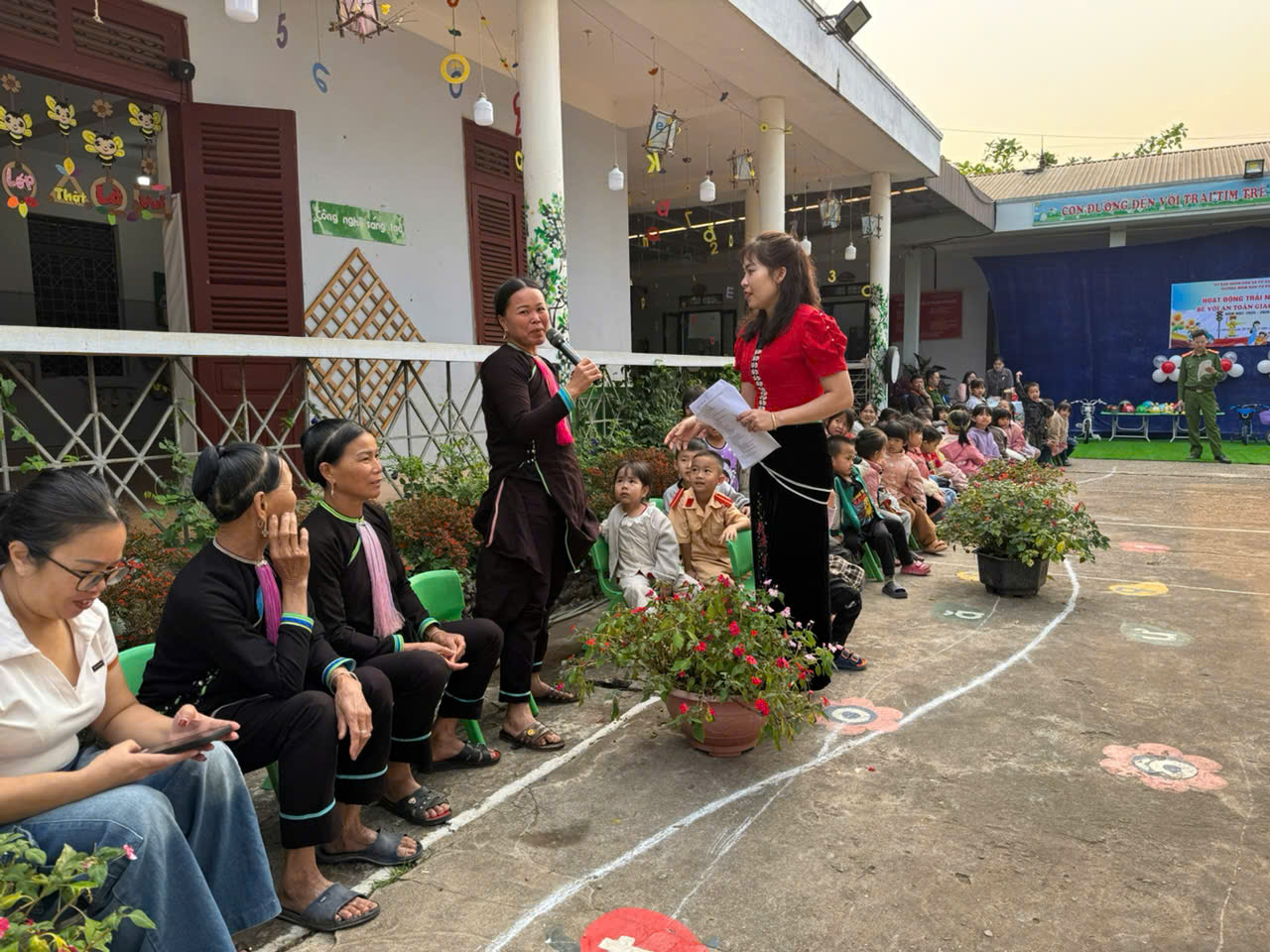 Bên cạnh đó, nội dung tuyên truyền về an toàn giao thông cũng được triển khai, tập trung vào việc nâng cao ý thức chấp hành luật giao thông đường bộ cho phụ huynh, giáo viên khi đưa đón trẻ; nhắc nhở việc đội mũ bảo hiểm cho trẻ em, không sử dụng rượu bia khi tham gia giao thông, chấp hành nghiêm các quy định về an toàn giao thông.