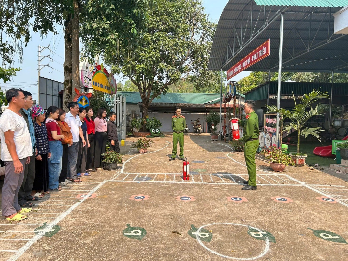 Trong phần tập huấn thực hành, cán bộ, giáo viên và phụ huynh đã được trực tiếp hướng dẫn sử dụng bình chữa cháy xách tay, kỹ năng xử lý đám cháy nhỏ, cách thoát hiểm an toàn khi xảy ra cháy tại trường học. Hoạt động đã thu hút đông đảo sự tham gia, góp phần nâng cao kỹ năng thực tế, chủ động phòng ngừa và ứng phó với các tình huống nguy hiểm.