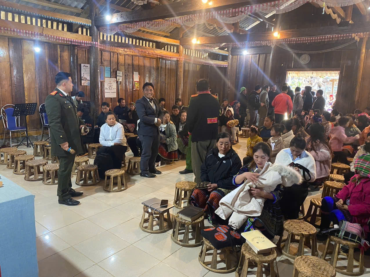 Bà con dân bản Sin Suối Hồ tập trung đến nghe tuyên truyền