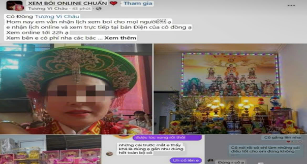 Trong thời đại công nghệ số, cùng với sự phát triển mạnh mẽ của mạng xã hội như Facebook, TikTok hay Youtube, các hoạt động tâm linh cũng dần “chuyển mình” sang môi trường trực tuyến. Tuy nhiên, lợi dụng niềm tin tâm linh của một bộ phận người dân, nhiều đối tượng đã biến không gian mạng thành công cụ để trục lợi. Cùng với một số hình thức như xem bói online, “giải hạn từ xa”, “khai vận mở cung tài lộc”, “cúng thay”, “gọi hồn”, “truyền năng lượng”….đang nở rộ. Đáng lo ngại, nhiều người đặc biệt là thế hệ trẻ, đã bị cuốn vào những nội dung mang màu sắc mê tín dị đoan, thiếu kiểm chứng.